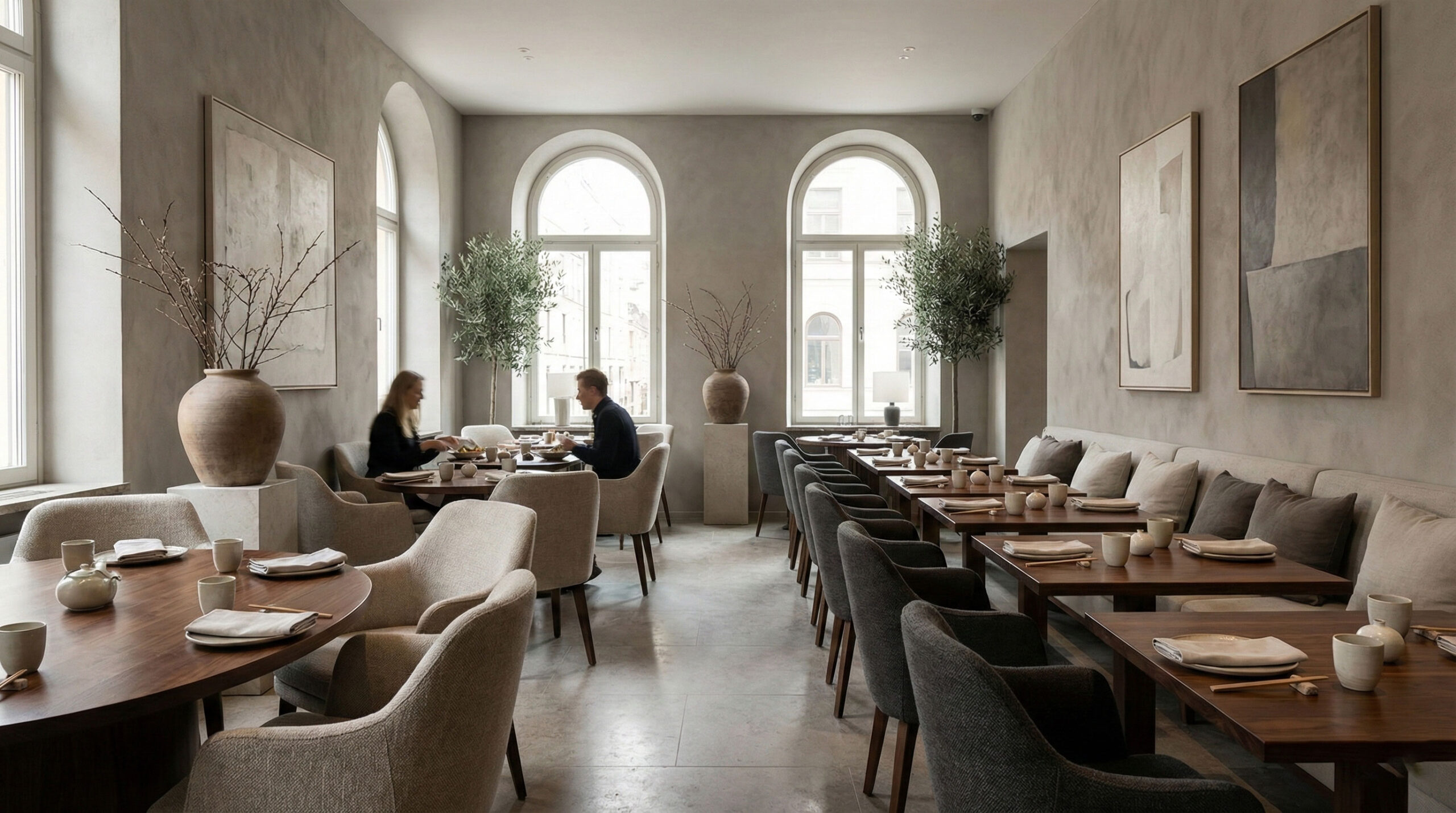 Aesthetic dining spaces with lighting and layouts that elevate the ambience.